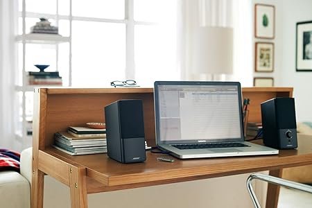 The Bose Companion 2 Series III is a compact, two-piece computer speaker system designed to deliver lifelike, spacious audio through TrueSpace® stereo digital signal processing, enabling wider sound from just two speakers. Its ported cabinet design enhances low-end performance, while dual 3.5 mm inputs let you connect both your computer and an auxiliary device like a smartphone. The right speaker houses a front-panel volume control and headphone jack for convenient listening. The system offers plug-and-play simplicity with no software needed and a setup that’s fast and intuitive.